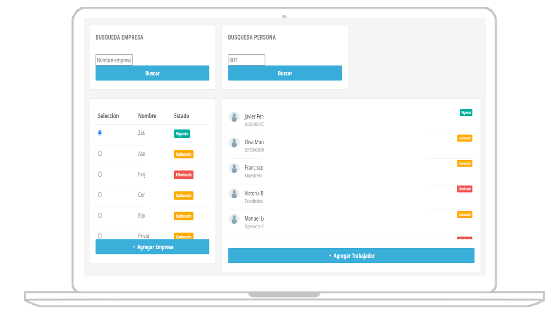 Ingresa con tus credenciales de acceso a un sistema web y luego podrás comenzar a registrar personas, empresas, equipos.